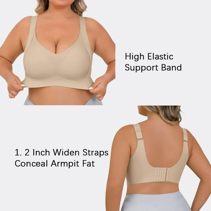 Our Bra uses an enhanced W-supportive shaper, which provides 50% more support and comfort compared to other bras.Our Bra gives you a smooth look under a light top or any other clothing. It's designed to get rid of any extra fat that might stick out and supports you all day long.